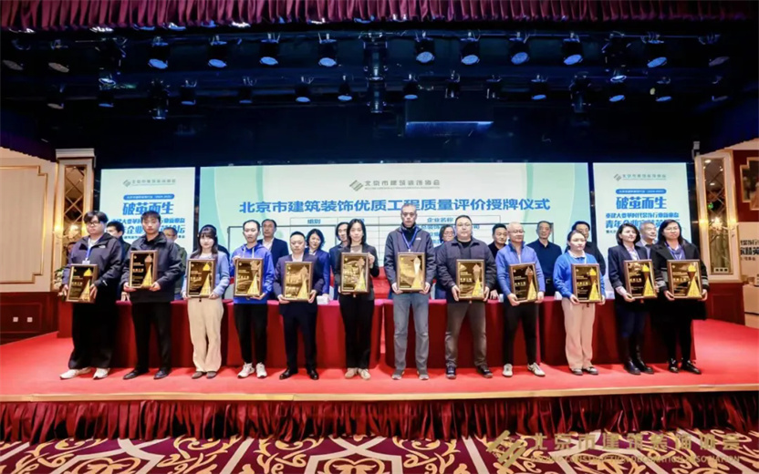 同時(shí),2023-2024年度北京市建筑裝飾優(yōu)質(zhì)工程質(zhì)量評(píng)價(jià)結(jié)果及施工組織設(shè)計(jì)競(jìng)賽也在會(huì)議中公布,戴工集團(tuán)憑借精湛的施工工藝和嚴(yán)格的品質(zhì)把控,所承建的“門頭溝三家店糧庫(kù)棚改定向安置房項(xiàng)目精裝工程”以及“清華大學(xué)求真書院雙清綜合樓辦公區(qū)裝修項(xiàng)目”均獲得2024年度北京市建筑裝飾優(yōu)秀工程獎(jiǎng)!