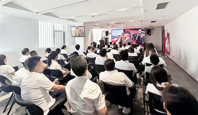 在觀看過程中,受閱部隊(duì)整齊劃一的步伐、先進(jìn)精良的武器裝備,無(wú)一不讓員工們心潮澎湃。屏幕上,一個(gè)個(gè)方陣如鋼鐵長(zhǎng)城般威嚴(yán),新型戰(zhàn)機(jī)呼嘯而過,新型導(dǎo)彈整齊列陣,展示著國(guó)家強(qiáng)大的國(guó)防實(shí)力。員工們的目光始終緊緊跟隨,不時(shí)爆發(fā)出熱烈的掌聲和由衷的贊嘆?!翱吹皆蹅儑?guó)家的軍隊(duì)這么強(qiáng)大,真的太驕傲了!” 現(xiàn)場(chǎng)觀看的員工紛紛表示,“我對(duì)國(guó)家的未來(lái)充滿信心,也更有動(dòng)力做好自己手頭的工作?!?nbsp;